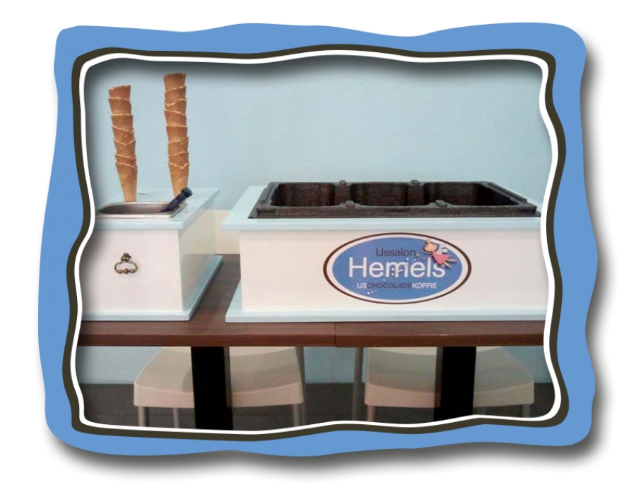 De IJscobar biedt ruimte aan maar liefst 3 bakken ijs van 5 liter. Doordat de bakken in tempex worden geplaatst blijft het ijs langer in topconditie en kan jij al je gasten tracteren op heerlijke ijsjes van Hemels.